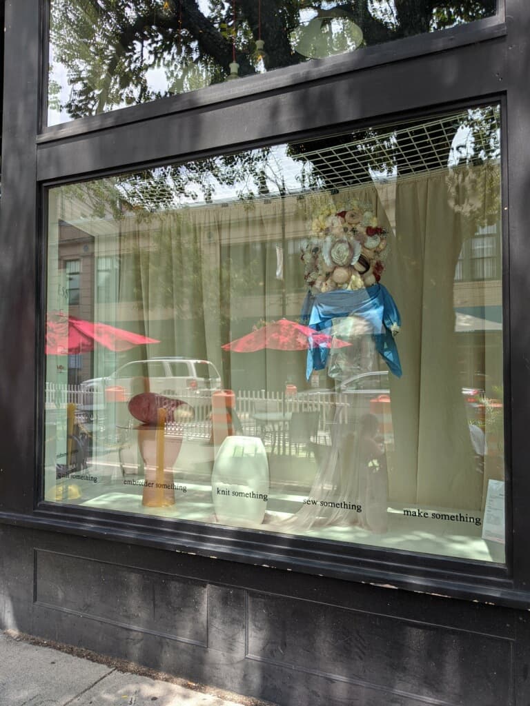 For the Storefront Project, the team points to Jessica Lau’s installation of Demeter’s Alter and Sleeping Zelos at Gather Here, a craft studio and store in Inman Square, as an example of the consonances between the window and the work within it.