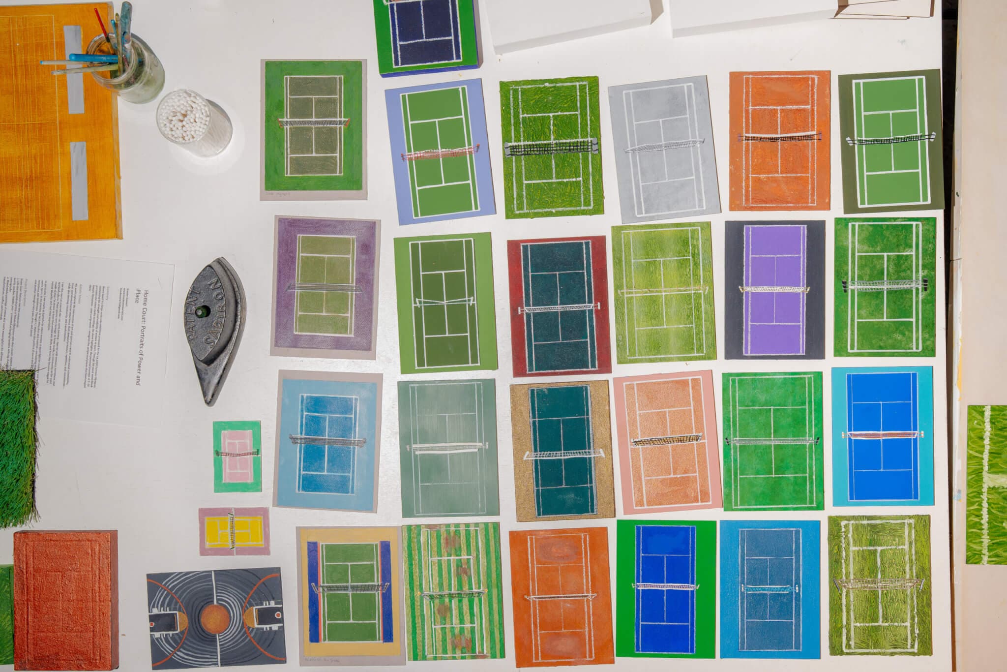 Creating studies of courts allows Stewart to test colors and textures before rendering them in a larger form. Photo by Cameron Kincheloe for Boston Art Review.