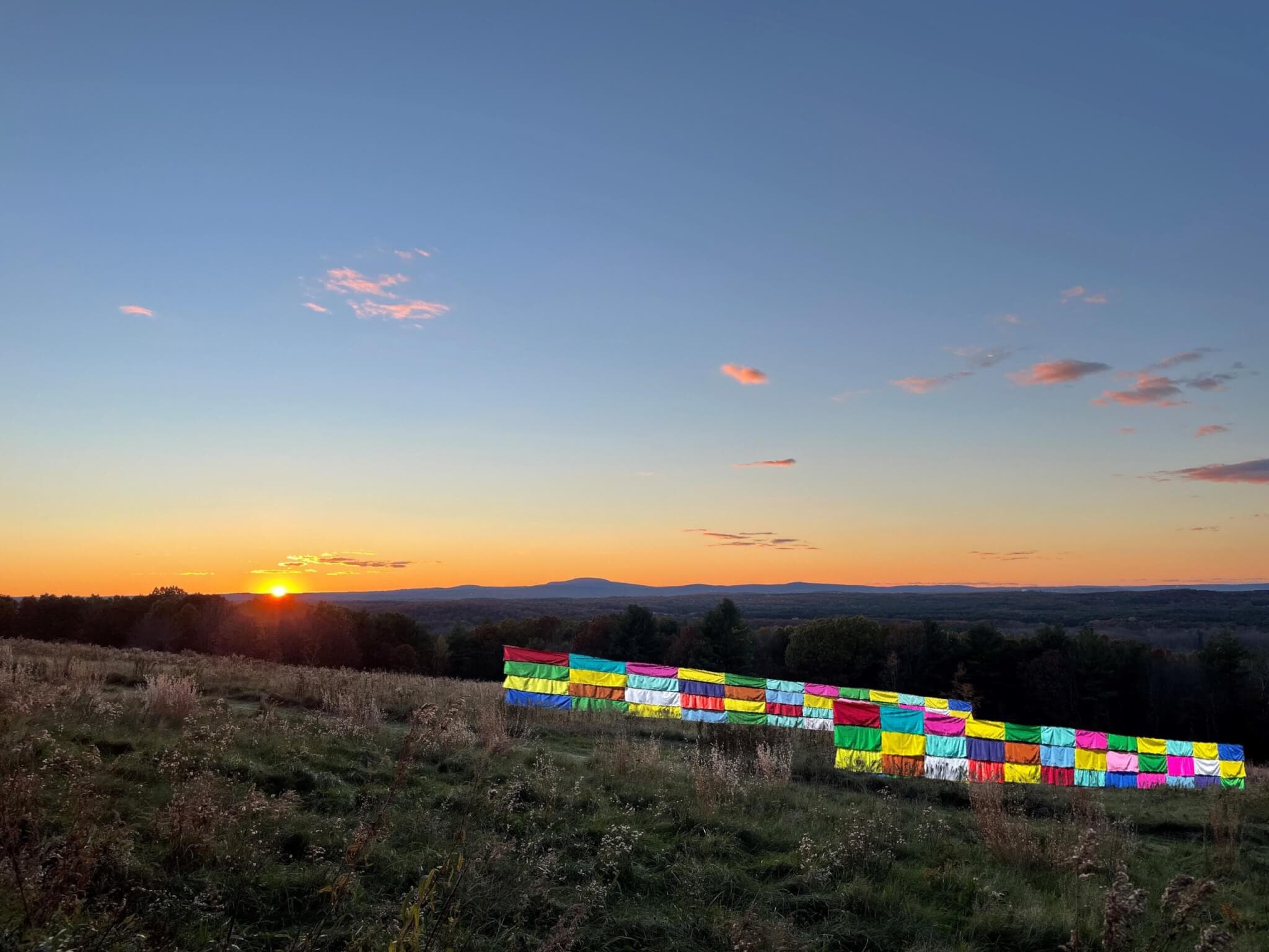 Earlier this year, the Fruitlands Museum debuted “Rachel Hayes: Transcending Space” in its entrance and main gallery (this show will be on view through March 2024). The exhibition features Hayes’s mesmerizing large-scale, color-block hangings. Now, Hayes is taking things outside—“The Edge of Becoming” promises a new way to interact with the Oklahoma-based artist’s site-responsive textiles as this work flutters along the hillside on the Fruitlands’s expansive bucolic landscape. Combining elements of craft, sculpture, architecture, and land art, “The Edge of Becoming” promises a unique opportunity to connect with and reflect on one’s relationship to the landscape.